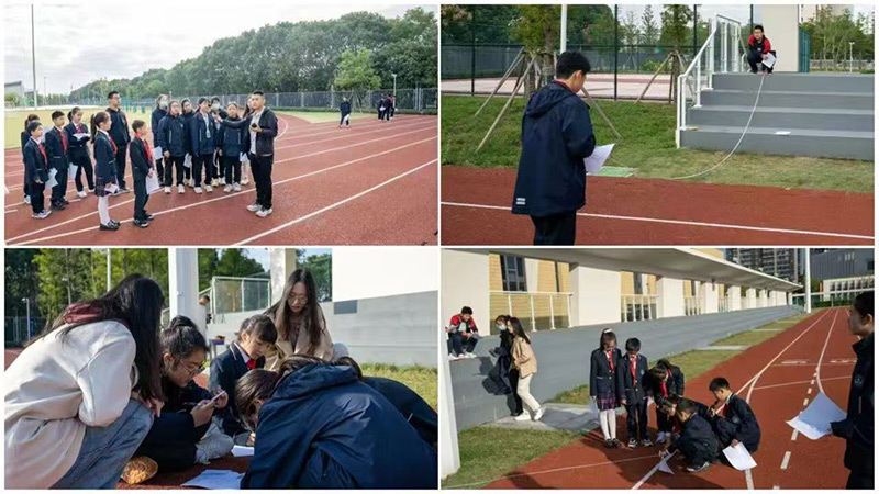 “我來設計一個表格,這樣數(shù)據(jù)匯總更清楚。”“我們可以把測量過程簡圖畫下來,在不同點位標出分貝數(shù)據(jù)~”“我發(fā)現(xiàn)正對喇叭的位置聲音最響.....”“我們組在喇叭后方也測了,聲音明顯降很多!”手拿分貝儀、拉直卷尺、調整角度……每一位同學都沉浸其中,認真完成自己的分工任務。這不是在實驗室,也不